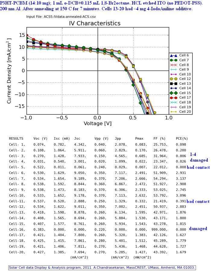 It is capable of analyzing the data from Solar-PCE.py or commercially bought program to produce identical one page report with more options. It is also capable of analyzing entire folder of files with a summary report containing best results from each experiment. (300 lines). See a Picture See HighLights