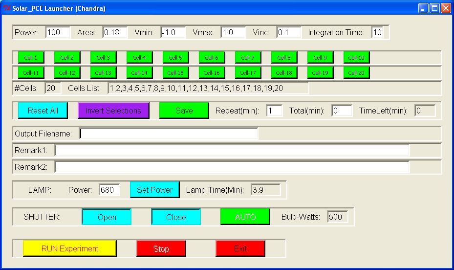 Bought a Parallel Port controllable relay switch board (8 switches) and connected it to the shutter of the light source. Included codes in the Solar_GUI program to make the shutter control automatic. All the 8 switches can also be controlled by this Switcher program so that up to 8 systems can be controlled! See a Picture