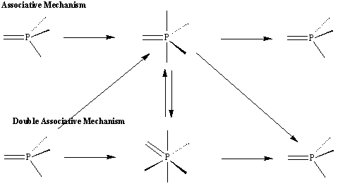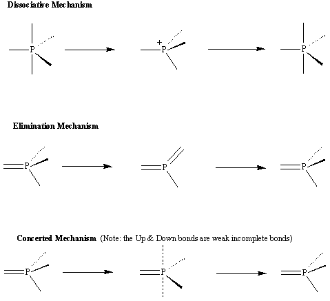 - Concerted Mechanism: the groups coming and leaving are weakly linked to phosphorus for little time.